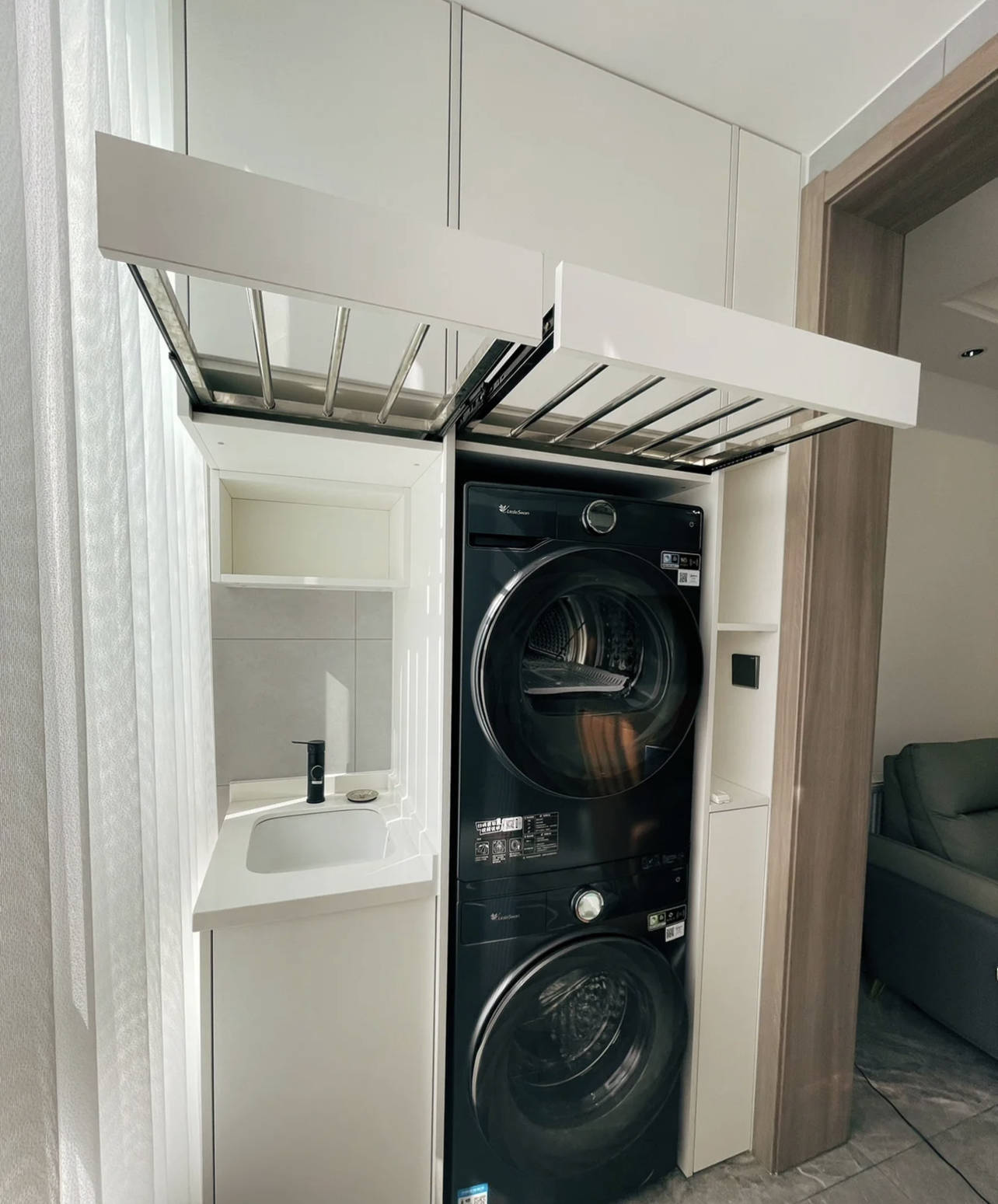 关于好意思不雅度条目高的东谈主,还不错像我家一样,在顶头作念上和柜子一样的板子,好意思不雅度更高。