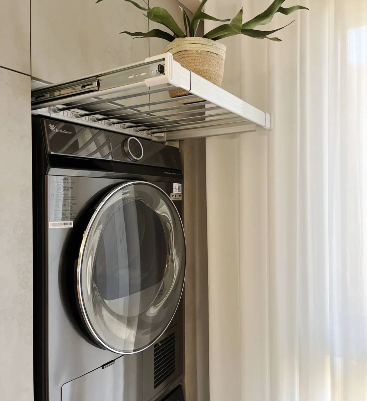 其次是,可抽拉的优点,用的时候拉出来,无须了推且归,关于阳台整洁度条目高的东谈主很友好。