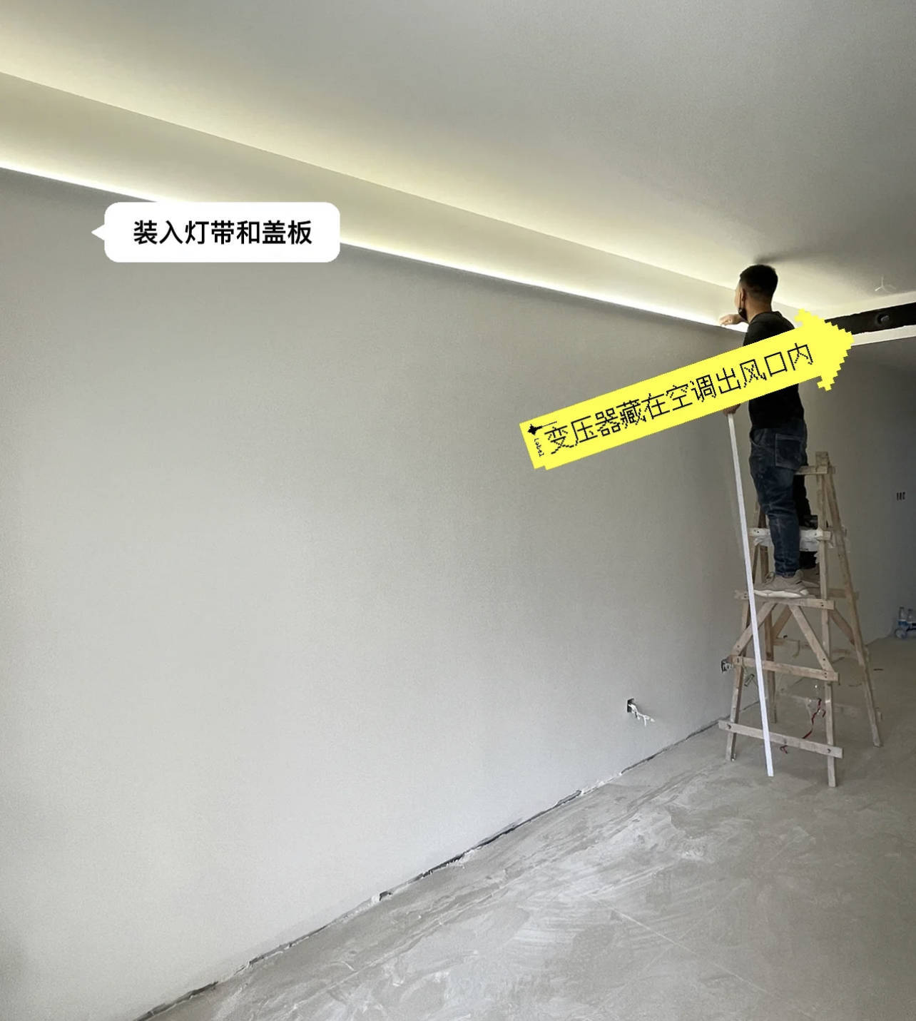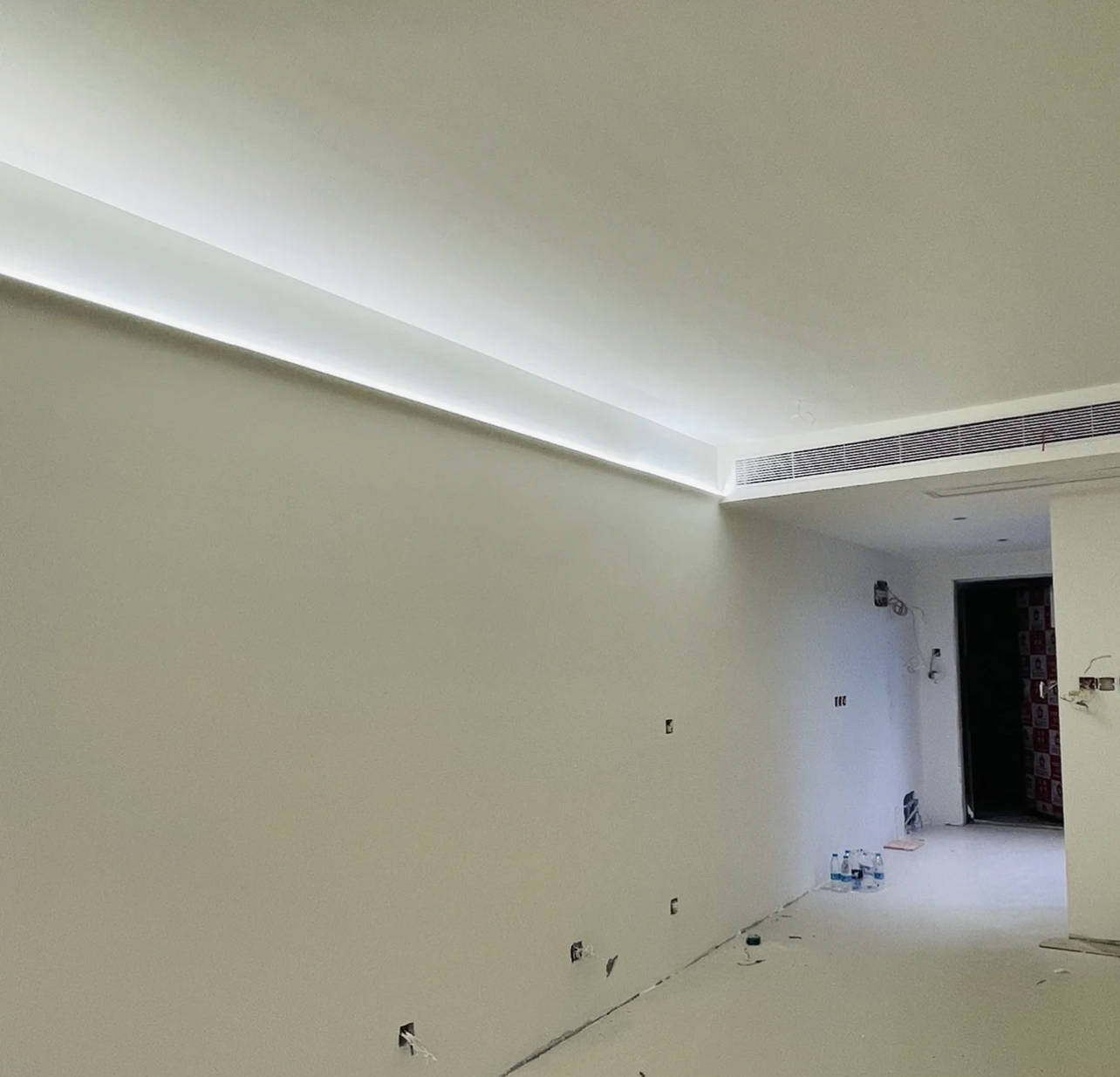 后果跟我设想中的王人备一样,不影响层高,还有洗墙灯的氛围感。并且就视觉后果而言,家里更有头绪感了。