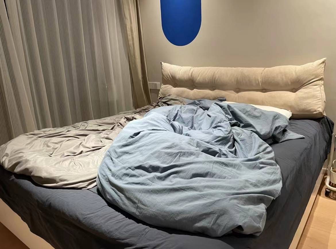 你还别说,这点倒是辅导我了,还买什么软包床了,就按我家这搭配,干预小,实用性还跟软包床一样,岂不乐哉!