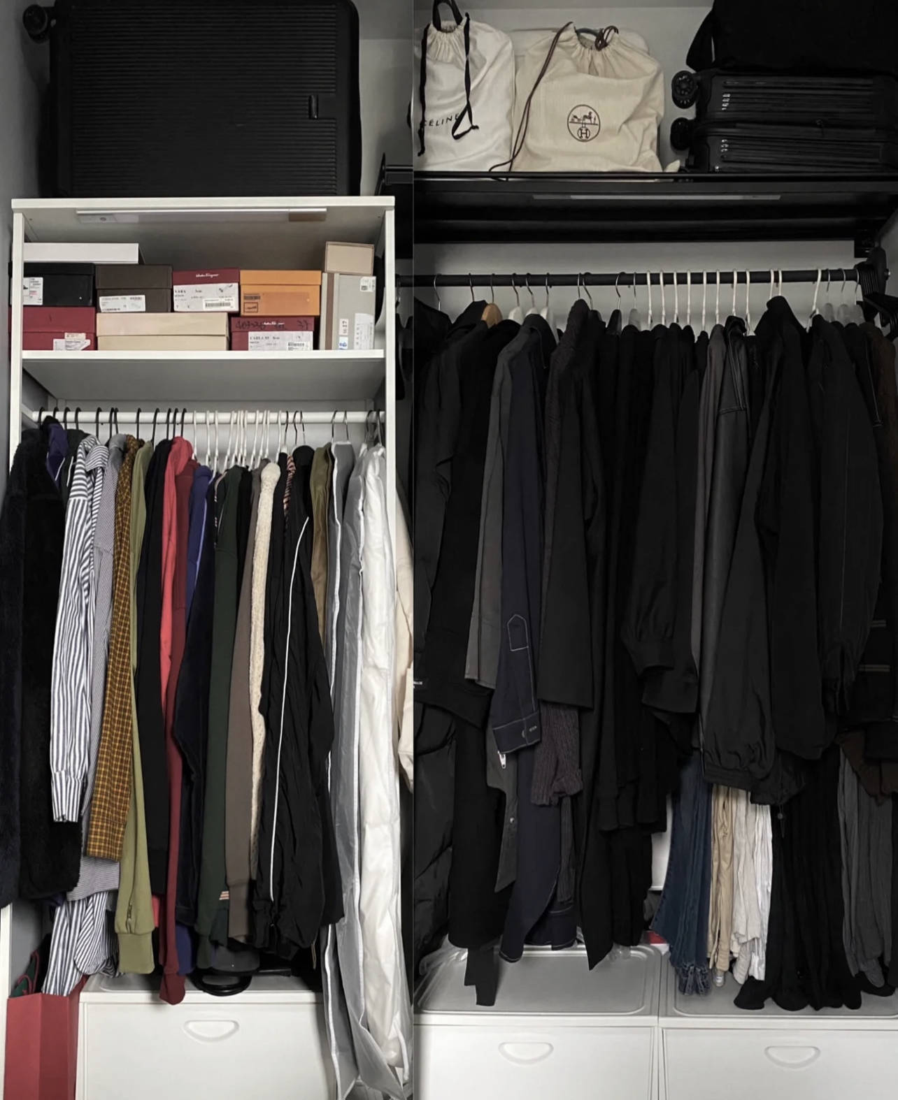 诚然,作念衣橱的原因,除了省钱、省空间,通俗才是最主要的。